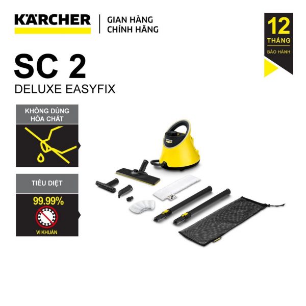 – Máy làm sạch bằng hơi nước SC 2 Deluxe EasyFix hay còn gọi là máy làm sạch đa năng là dòng máy làm sạch hiện đại, hoạt động và làm sạch ở nhiều vị trí và bề mặt khác nhau như sàn nhà, vệ sinh nhà bếp, máy hút mùi, làm sạch nhà vệ sinh, vòi hoa sen, bồn rửa tay….dựa vào hơi nước nóng, không cần dùng hóa chất.Với hệ thống điều khiển hơi nước 2 nấc giúp người dùng tăng giảm cường độ hơi nước để phù hợp bề mặt cần làm sạch hay mức độ nhiễm bẩn